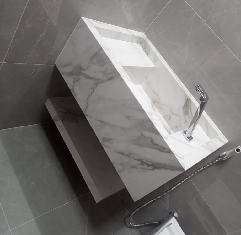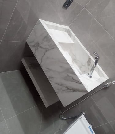 Cada peça nasce do encontro entre o olhar artístico e a precisão técnica — uma celebração da matéria-prima transformada em obra. Trabalhamos com mármores e granitos nacionais e importados, sempre com acabamento impecável e atenção aos detalhes que eternizam o ambiente.